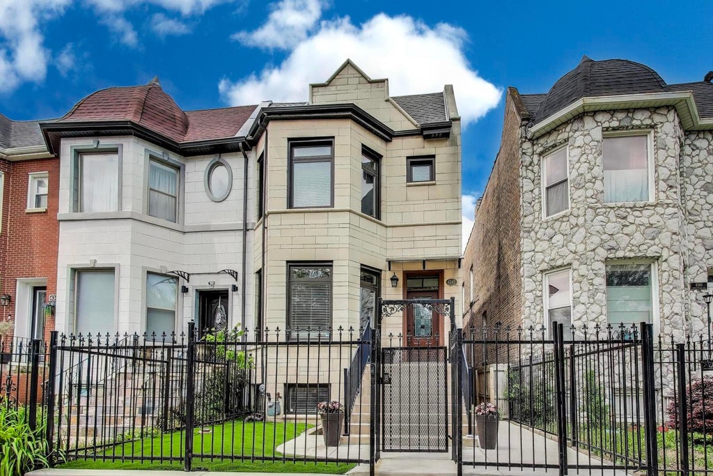 Welcome to 4342 S Forrestville Avenue - A Perfect Blend of Historic Charm and Modern Luxury. Located on a quiet, tree-lined street in the heart of Bronzeville's coveted Oakland neighborhood, this beautifully renovated 4-bedroom, 3.5-bath gated Greystone offers an impressive 4,177 sq. ft of thoughtfully designed living space. The home seamlessly combines timeless architecture with upscale, modern amenities-including a brand-new roof, furnace, air conditioning system, and new dishwasher. The sun-drenched main level features soaring ceilings, rich hardwood floors, metallic porcelain tile, two striking electric fireplaces that add warmth and style to the living space. The open-concept layout flows into a chef's kitchen that impresses with high-end appliances, custom cabinetry, quartz countertops, and an oversized island with built-in cooktop-perfect for entertaining and everyday living. Upstairs, the luxurious primary suite offers a spa-inspired bath with a soaking tub, walk in shower, dual vanity, and striking electric fireplace. Two additional bedrooms provide ample space for family, guests, or a home office. The duplexed lower level expands your living space with a large family room/recreation space, fourth bedroom, and full bath-ideal for entertaining, multi-generational living, or a private guest suite. Enjoy the outdoors on the expansive rear deck overlooking a private, fenced-in backyard. The gated property includes a brick two-car garage and is conveniently located near Lake Michigan, the Green Line, Sip & Savor, Mariano's, Bronzeville Winery, and many al fresco dining options, Gallery Guichard, Harold Washington Cultural Center, Illinois Institute of Technology, Bronzeville Walk of Fame, and Southside Community Art Center. Plus, it's close to excellent schools. Experience secure, stylish, and spacious urban living-schedule your private showing today!