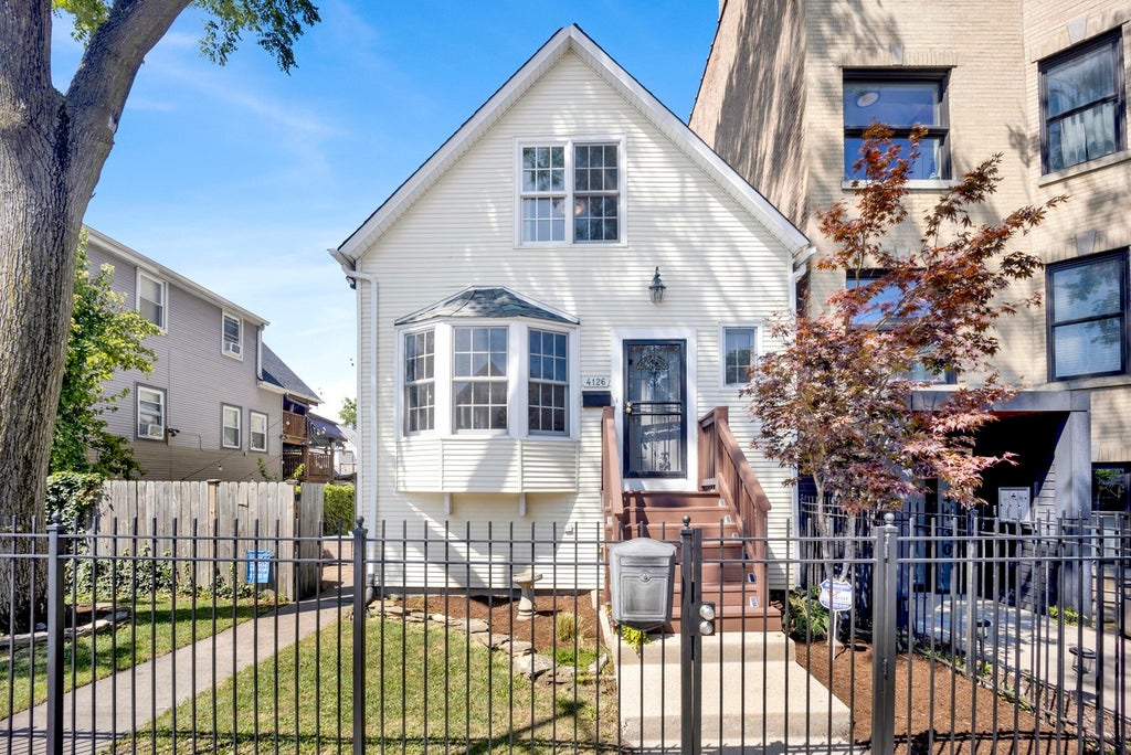 Light, bright & airy 4 bedroom, 2 bath home on extra-wide lot in Irving Park. Set on a 37.5' wide lot, this home enjoys tons of light and a wonderful feeling of space as you move through the intelligent layout. The main floor features spacious living room with bay window, which connects to your dining room, with views of the landscaped side patio. Step into your massive, updated white kitchen with granite counters, GE Monogram stainless steel appliances (including 6 burner range), massive island, walk-in pantry & an attached family room/breakfast area. Flow outside to a true urban retreat: spacious back deck, which steps down to your massive yard, including bonus patio that is a great spot for outdoor dining or outdoor movies. If you like to entertain, this house is made for you! Upstairs, you'll find 3 bedrooms, including a primary that fits a king-sized bedroom. The finished basement offers an additional family room with office/den area that is perfect for guests (we currently have a queen sized bed there), full bath, laundry plus a spacious 4th bedroom with cool reading nook - which could easily double as a private home office, guest quarters, home gym or more! 2 car garage plus parking pad for 2 additional cars, fully fenced yard. Convenient location near CTA Bus and Irving Park blue line, near restaurants and the best part....across from Miko's Italian Ice! Taxes do not include homeowners exemption. Come home! **Multiple Offers Received - Buyers are invited to submit their best offers by 5pm Monday, August 25th.**