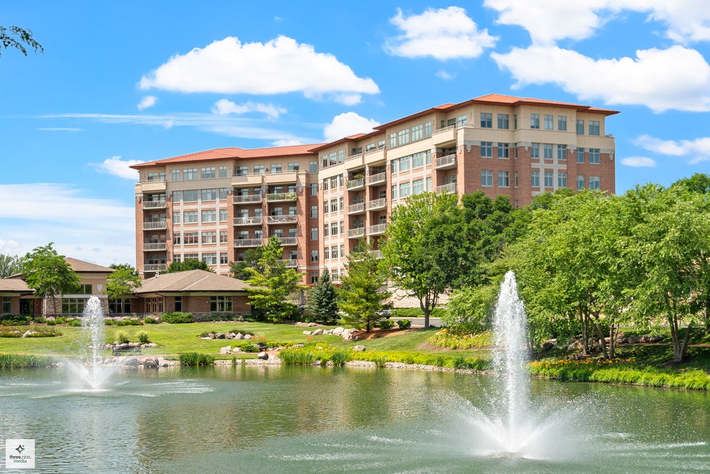 Welcome home to your stunning 2 bed 2 bath condo, in the most sought after building at the beautiful resort style Prairie Park Development! This south facing unit with pond views features: 9 1/2 foot ceilings, hardwood floors, & walls of windows with electronic blinds, that make this open floor plan expansive and bright! Upgraded eat-in kitchen, granite countertops and stainless appliances & freshly painted throughout. Huge en-suite primary bedroom with tons of closet space plus huge walk-in closet, upgraded shower with tiled bench and safety bars. Spacious balcony with unobstructed views of the private clubhouse, pond, fountain, swans and ducks! Indoor heated garage space #81 (on 1st floor close to entrance) + storage cage #81. Assessments include exclusive access to the amazing clubhouse with indoor pool, jacuzzi, sauna, fitness center, party room, and management office. Steps to shopping, dining at Wheeling's Restaurant Row, culture, highways, 1.6 miles to Metra, and everything this amazing location has to offer! All disclosures and floor plan under "additional information" tab.