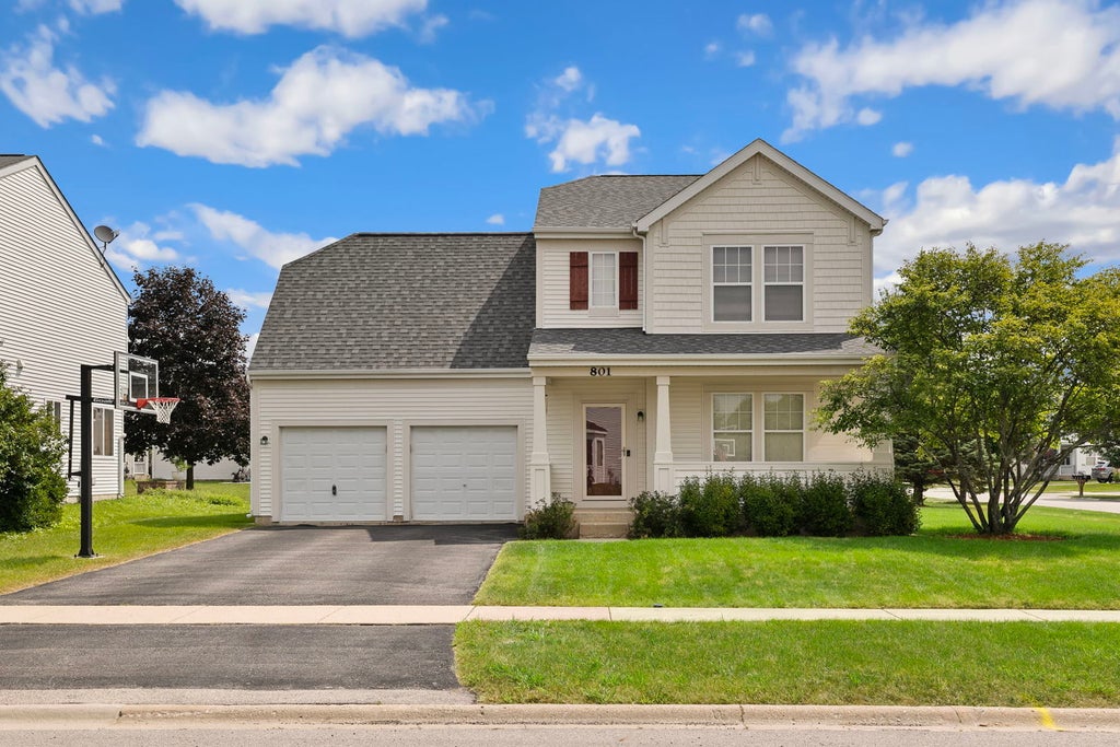 Welcome to 801 S Parkside Dr - a beautifully maintained original-owner home nestled on a spacious corner lot in a warm, welcoming neighborhood in Round Lake. Built in 2003, this thoughtfully updated residence offers 2,417 sq ft of living space, 4 generously sized bedrooms all located on the second level, and 2.5 baths, ideal for comfortable family living. Step inside to find modern updates throughout, including whole-house wood laminate flooring, tall 9-foot ceilings on the main level, and abundant natural light. The main floor features a spacious living and dining area that flows into a modern kitchen complete with stainless steel appliances, a center island, and sliding doors that lead to the backyard - with plenty of space to add a deck for outdoor entertaining. Upstairs, you'll find four large bedrooms, including a bright and airy primary suite, and a convenient second-floor laundry room. The recently finished full basement (completed within the last 6 months) offers even more living space - perfect for a recreation room, home office, or additional entertainment area. The exterior boasts a well-maintained yard, beautifully landscaped and ideal for outdoor enjoyment. The home sits on a 9,583 sq ft lot and includes a 2.5-car attached garage with generous storage space, offering both convenience and function. Additional highlights include: New roof from 2021, First owner, Finished basement, Corner lot, Well-cared-for yard and landscaping, Friendly neighbors and a strong sense of community, Parking: 2.5-car attached garage.