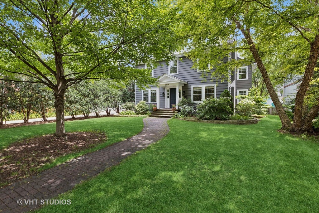 Charming and expanded 4-bedroom, 3.1-bath center-entry Colonial located on a picturesque tree-lined street in desirable NW Evanston. The welcoming foyer separates the main living areas-on the south side, you'll find a spacious living room with a wood-burning fireplace that flows into a newly added family room overlooking the expansive backyard. On the north side, a generous dining room with built-in corner china cabinets connects to a beautifully renovated kitchen featuring white cabinetry, honed granite countertops, stainless steel appliances, classic white subway tile, and herringbone-patterned tile flooring. The kitchen leads to a functional "mudroom" area with access to the backyard. A stylishly updated full bathroom with designer tile and a walk-in shower completes the first floor, offering flexible space ideal for guests or an in-law suite. The finished basement includes a recreation area, ample storage, a half bath, and a laundry room. Upstairs, you'll find four spacious bedrooms, including a newly built fourth bedroom with serene eastern views, a primary suite with a private bath, a hall bathroom, and a large bedroom with stairs leading up to a private third-floor retreat or home office. Outside, the deep backyard offers endless possibilities for landscaping and outdoor living, and is complemented by a two-car garage. This well-maintained home includes numerous thoughtful updates and is ideally situated near Central Street shops, Willard Elementary, parks, and public transportation.