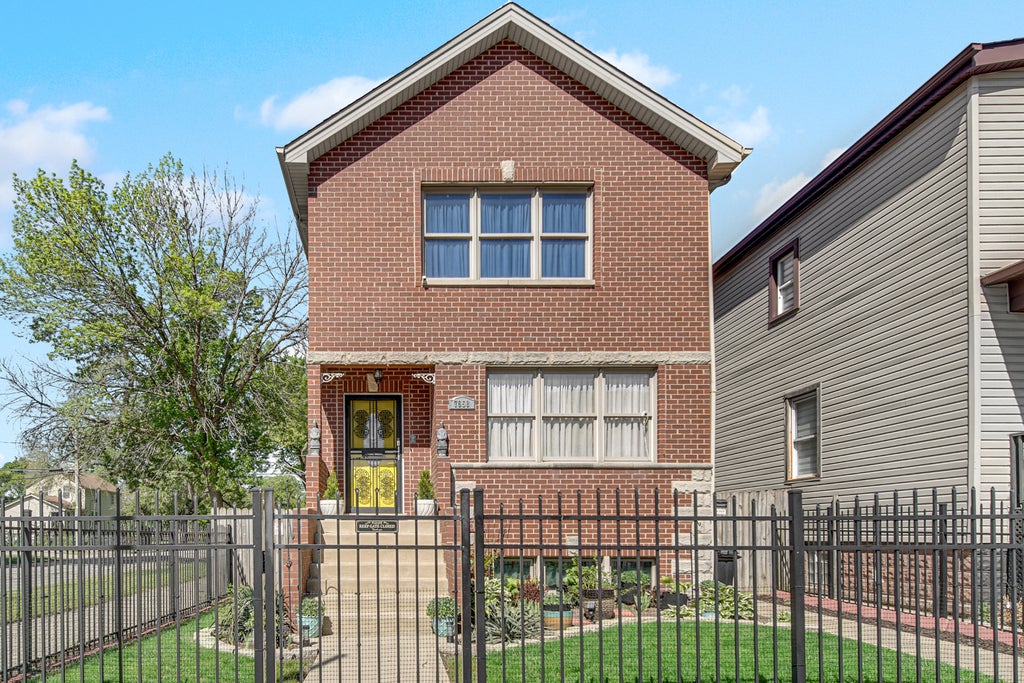 This stunning corner property offers over 2,500 sq ft of exquisite living space, combining elegance and comfort! Step inside to find 3 spacious bedrooms, 2 full baths, and 2 half baths. The open-concept layout includes a combo kitchen and dining room, breakfast nook, and kitchen counter bar-perfect for both everyday living and entertaining. The kitchen features beautiful 48-inch cherry cabinets, granite countertops, and a full stainless steel appliance package, all set beneath soaring ceilings that create a bright, airy atmosphere. The master bedroom is a true retreat, complete with vaulted ceilings, a generous walk-in closet, and a luxurious en-suite bathroom that includes a jacuzzi tub and separate shower. The inviting living and dining area showcases a beautiful gas fireplace that sets the ambiance for cozy evenings and lively gatherings. Just off the kitchen and great room/family room is direct access to the backyard, making indoor-outdoor living a breeze. The finished English basement adds even more living space with a large open recreation room/den great for a 4th bedroom or in-law suite. Outside, enjoy a large, fully fenced backyard with a deck off the family room, ideal for weekend barbecues and outdoor entertaining. Fresh and neutral, the home is painted in Behr Premium Plus Base 3050 Manual Beige (THD22-505c7)-a timeless color that complements any decor. Located less than 3 miles from the upcoming Obama Presidential Center (approximately a 10-minute drive). Plus, a brand-new Metra station is under development just down the street at 79th and Greenwood, providing enhanced access to downtown Chicago and boosting neighborhood connectivity. Don't miss your chance to own this exceptional home. Schedule your private showing today! As-Is, Where-Is.