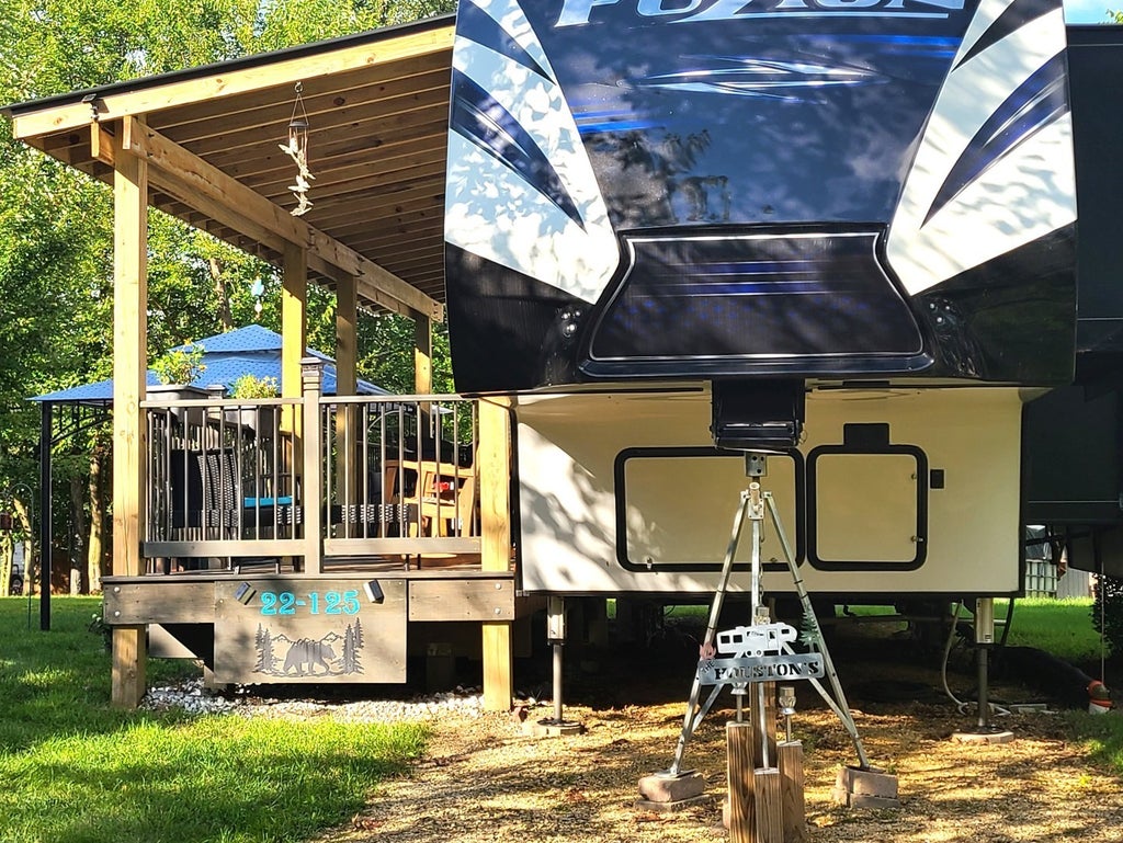 This 2018 Fuzion 369 is a luxury fifth-wheel trailer. The trailer is packed with state of the art features like the iN-Command systems which allows you to control the slides, awning, and lights via a touchscreens panel. The main cabin features heated, massaging residential furniture, a large stainless steel refrigerator, and solid surface countertops. The living area includes a premium Jensen stereo system . Built for all-weather camping, it features a heated and enclosed underbelly, insulated ductwork, and tank heat pads. Also there are LED lights on the bottom of the heated sofa which also offers a massage capability. The fire place provides heat and ambiance light. The trailer is equipped for 4G Wi-Fi. The ramp door converts into a patio with an electric awning. It also has a 5,500-watt generator and a 30 gallon fueling station for motor vehicles. The large covered deck provides year-round usability, and weather protection. Call us for a showing today. You will enjoy our beautiful 7 lakes, fishing ponds, pools, beach, and playgrounds. For your convenience we have a general and hardware store as well as a gas station. Enjoy trails for hiking, cross country skiing, and snowmobiling. Gated facility - must be accompanied by a Real Estate Broker. Property owner is responsible for yearly assessments. This is not a homestead property.