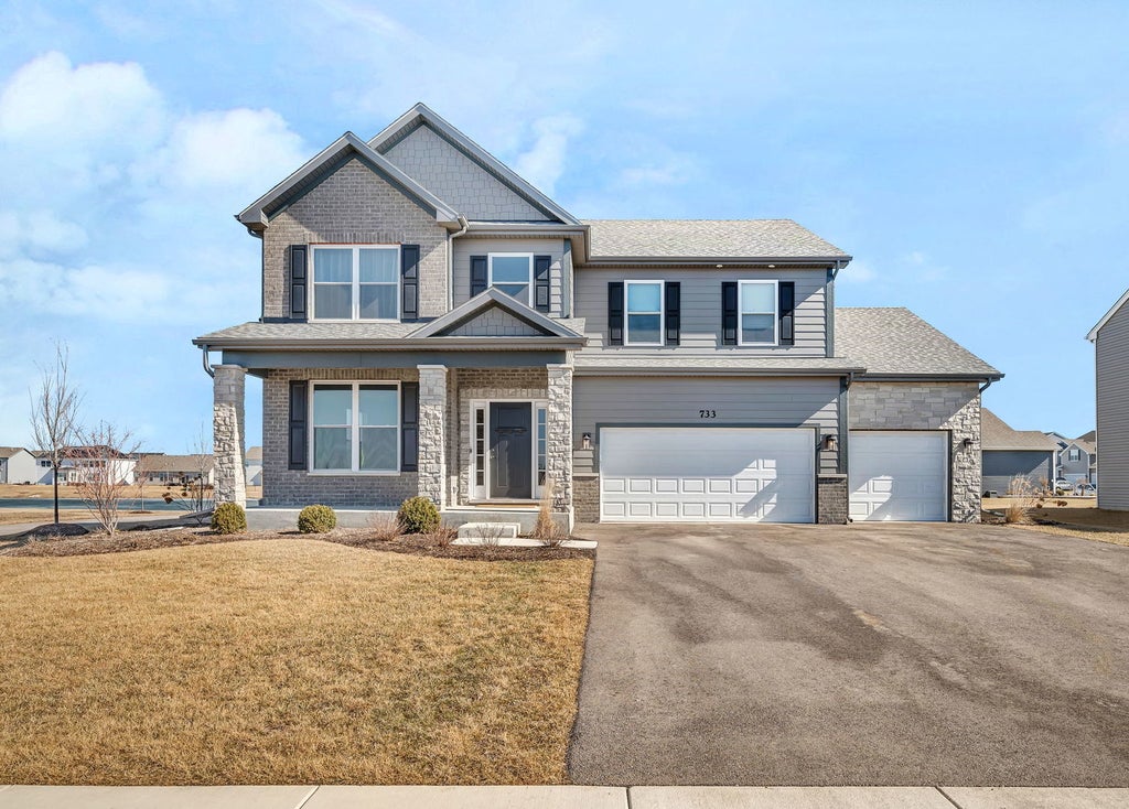 Welcome to this stunning two-story home located in the highly sought-after Ashcroft neighborhood and within the desirable 308 school district. This spacious residence offers 5 bedrooms, 2.5 bathrooms, and a 3-car garage with side yard access and smart garage door openers equipped with cameras. The main level features soaring 9-foot ceilings and an inviting family room with a deluxe gas fireplace and floor-to-ceiling stone surround. The kitchen is a chef's dream, complete with a brand-new backsplash, quartz countertops, a large island with seating, an abundance of cabinets, walk-in pantry and direct access to the backyard and patio, perfect for entertaining. A convenient half bath is also located on the main floor. The expansive primary suite boasts double doors, a full en-suite bathroom with a soaking tub, separate shower, double vanity and a walk-in closet. Enjoy serene backyard and pond views from the comfort of your bedroom. The home also includes a spacious unfinished basement with the potential to add an extra bedroom, living area and plenty of storage. Curb appeal abounds with stone pillars on the front porch and well-maintained landscaping. Ideally situated just minutes from downtown Oswego, shopping, dining, bike paths, ponds and so much more. Good credit and rental history. Schedule your showing today!