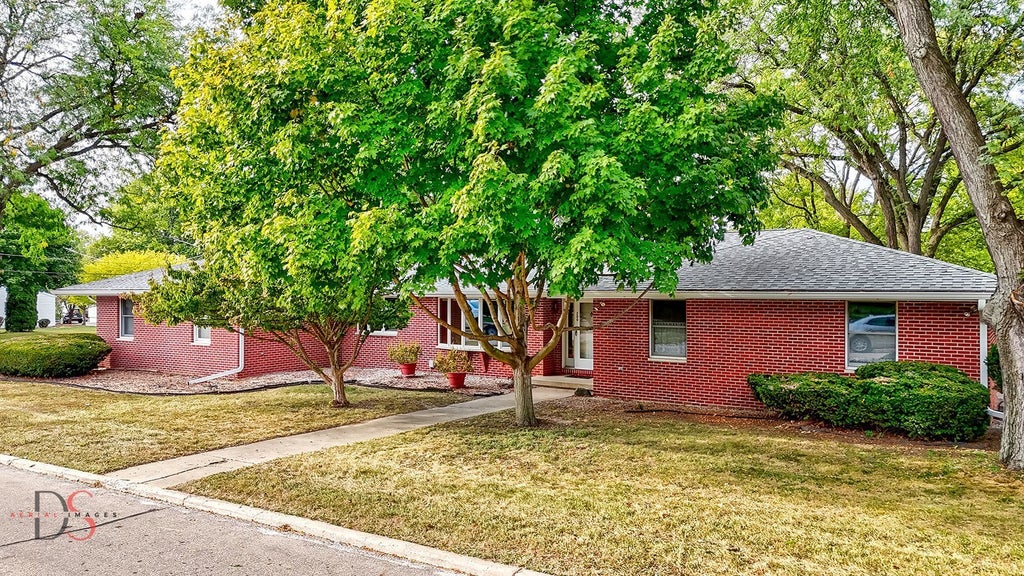 This classic and very spacious all brick 3 bedroom, 2.5 bath ranch-style home stands proudly on two full lots (132' x 140') The huge backyard is fully fenced. The home is nearly 2200 square feet and offers open living space with wonderful flow from the open kitchen/family room into the living room/dining room. A dual wood-burning fireplace is featured in the center of the living space. Full wall custom cabinetry stands in the family room and dining room. A 12' x 20' enclosed, heated porch is accessed from the dinette area and leads to the back deck and overlooks the private backyard. The bedrooms are spacious and the primary bedroom has a private bath. There is a main floor laundry room. The full, unfinished basement offers wonderful potential for finishing. A spacious walk-in cedar closet and a full (functioning but unfinished) bath are in place. The 2.5 car attached garage is 24' x 27' and features double doors and ample storage. Two storage sheds are nestled in the backyard. One is 12' x 16' with an overhead garage door and the other is 8' x 12'. All appliances are included. Whole house fan. Full blueprints available. The house is listed below assessed value.