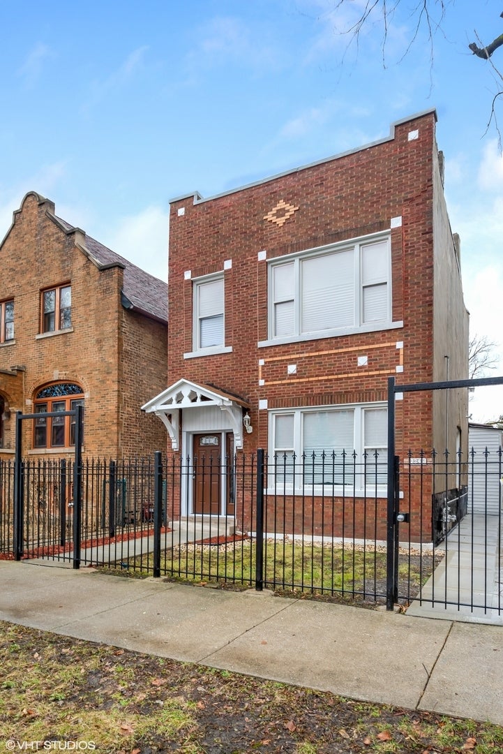 Charming brick two unit building on an extra wide lot in the heart of vibrant Little Village! The building, built in 1875, features 2 stylishly updated apartments. Unit 1 is a 3 bedroom 1 bath with a huge kitchen, stainless steel Whirlpool appliances, granite countertops, blue cabinets, and plenty of space for a dining table or floating island. New wood laminate flooring throughout the spacious living room and bedrooms. The kitchen has new black and white tile flooring. The bathroom has pink terrazzo tile floor and updated plumbing fixtures, vanity, and lighting. New ceiling fans and lighting throughout unit 1.Unit 1 also has in unit laundry and new blinds. Upstairs you have a sunny and spacious 2 bedroom, 1 bathroom apartment with laminate flooring, granite kitchen countertops, Whirlpool stainless steel appliances and and on trend cabinetry. All appliances are from 2019 including hot water heaters and unit 2 furnace (serviced annually). Unit 1 furnace replaced in October 2024. Oversized yard allows light in both units and is a gardener's delight. Brand new sewer line and associated concrete work in 2019. The property has forced air heating; no cooling. Incredible, fully gated yard on a 30 ft lot. Great location just blocks from the busiest retail corridor in Chicago, urban garden at Ogden, and the Pink Line Central Park stop. Easy commute to downtown and close to all the action in Pilsen. Easy to rent apartments with a history of long term, quality tenants. Unit 2 does not have in-unit laundry or hookups. The building needs some new windows and masonry work. Ideal for a handy owner occupant, investor who wants to continue to add value, or handy person. No basement or crawl space. Seller is a licensed IL real estate broker. Being sold AS IS.