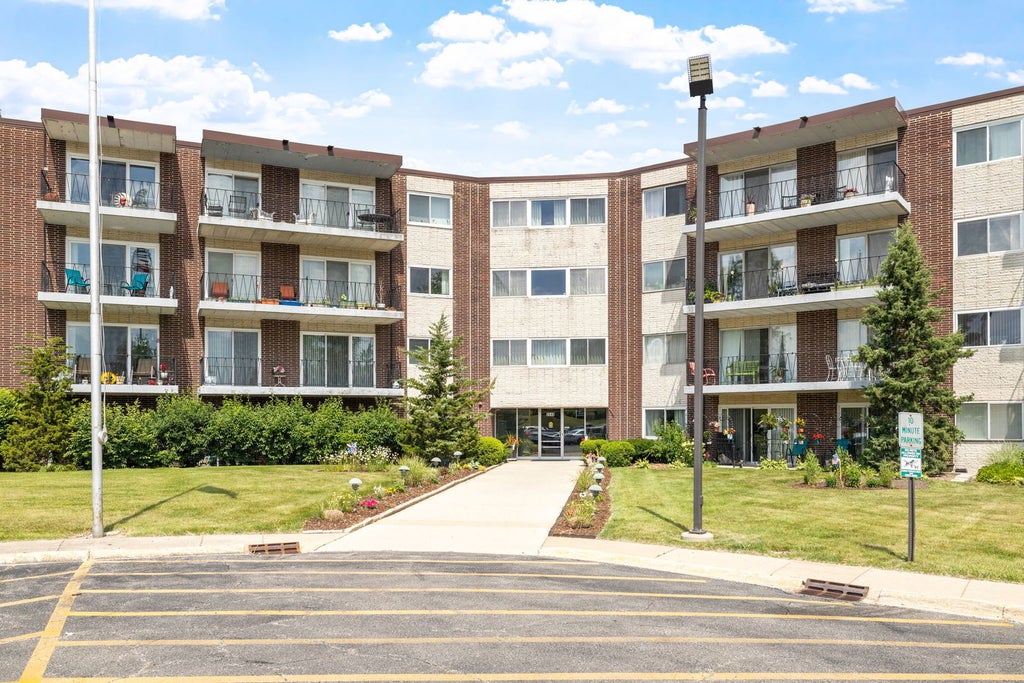 Cameo offers the best in 55+ active adult living in Downers Grove. This modified "Duchess" model has two bedrooms, one and a half baths and additional utility closets. The unit is located on the picturesque back side of the building where the views are serene and private. Convenient access to the walking bridge leads directly to the secure garage space. The full bathroom was updated just a couple years ago with a custom shower featuring a low threshold entry. This bathroom was also just professionally painted. Wide plank luxury vinyl flooring was professionally installed and gives a fresh and updated look throughout the kitchen and hallway areas. Both bedrooms were just professionally painted. A new hot water tank was installed on 10/09/25. This floorplan is uniquely larger than the typical Countess model at Cameo. This 55+ community for active adults has many amenities which include multiple gathering spaces, exercise room, library, well maintained laundry facilities and plenty of guest parking. Low property taxes are a plus, for both the condo and the deeded garage space. Very reasonable monthly HOA fees include exterior maintenance, lawn care, snow removal, common insurance, water and sewer and use of the building amenities. This friendly, well maintained and self managed condo community is the best carefree senior option to call home in Downers Grove!