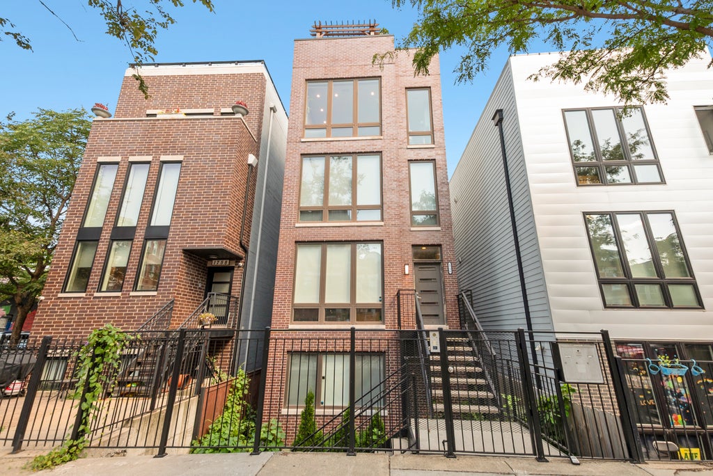 Welcome to 1756 W. Cullerton Street, an exquisite 2 bedroom, 2 bath penthouse condo located in Chicago's beloved Pilsen neighborhood. Originally constructed in 2020, this third floor unit features top of the line luxury finishes throughout over 1,250 square feet of smartly-designed living space. The modern kitchen and living area are spacious and inviting, with an idyllic Southern exposure providing consistent natural sunlight and warmth throughout the day. The beautiful floor to ceiling windows not only illuminate the space with natural light, but are also outfitted with custom remote-operated shades for easy control and privacy. The built-in electric fireplace sets the vibe with a simple click of a button, the perfect way to elevate the atmosphere while entertaining or simply cozying up on a chilly night. The kitchen is a culinary dream, featuring gorgeous flat-panel cabinetry and quartz countertops, custom tile backsplash, under-cabinet lighting, high-end stainless steel appliances, and peninsula. If desired, the main living area is spacious enough for a dedicated dining area/banquette for additional seating. Beautiful hardwood floors flow from the living room and kitchen down the hallway leading to the 2nd bedroom, an elegant full guest bath, and finally to the primary suite, featuring a walk-in closet and spa-like bath with a dual vanity and marble walk-in shower with rain shower head. Through the rear exit of the unit is a lovely deck perfect for stepping out to enjoy your morning coffee, one of two private outdoor spaces. The very best is saved for last as you travel up to your stunning, private rooftop terrace, the ultimate outdoor retreat for year-round enjoyment. No detail was spared in the creation of this urban oasis, complete with maintenance free Timber Tech composite flooring, a Pergola to relax under, and generous space for gardening, outdoor dining and entertaining, all while taking in sweeping skyline views. Additional notable features/improvements include: 4 inch recessed lighting, touch sensor dimmer lights, touch sensor mirror lighting in bathrooms, spray foam insulation for sound proofing, video intercom, private storage room, tankless water heater, new storm doors, secure entries in both front and rear with faab and code access, all new exterior lighting, and newly painted/finished front and rear stairwell gates. Take in all that the culturally vibrant Pilsen community has to offer, from the collection of dozens of brilliant public murals and The Mexican Museum Of Art, to the celebrated culinary scene with local favorites including Carnitas Uruapan, 5 Rabanitos, and Novel Pizza Cafe... all steps from your front door! Extremely commuter friendly location within minutes to public transportation (18th Street, Pink Line, I-55, I-90) and shopping (Aldi, Costco, Jewel). This unit checks every box... refined modernity coupled with comfort and function, creating a home that feels both curated and effortless. One of the best values in Pilsen!