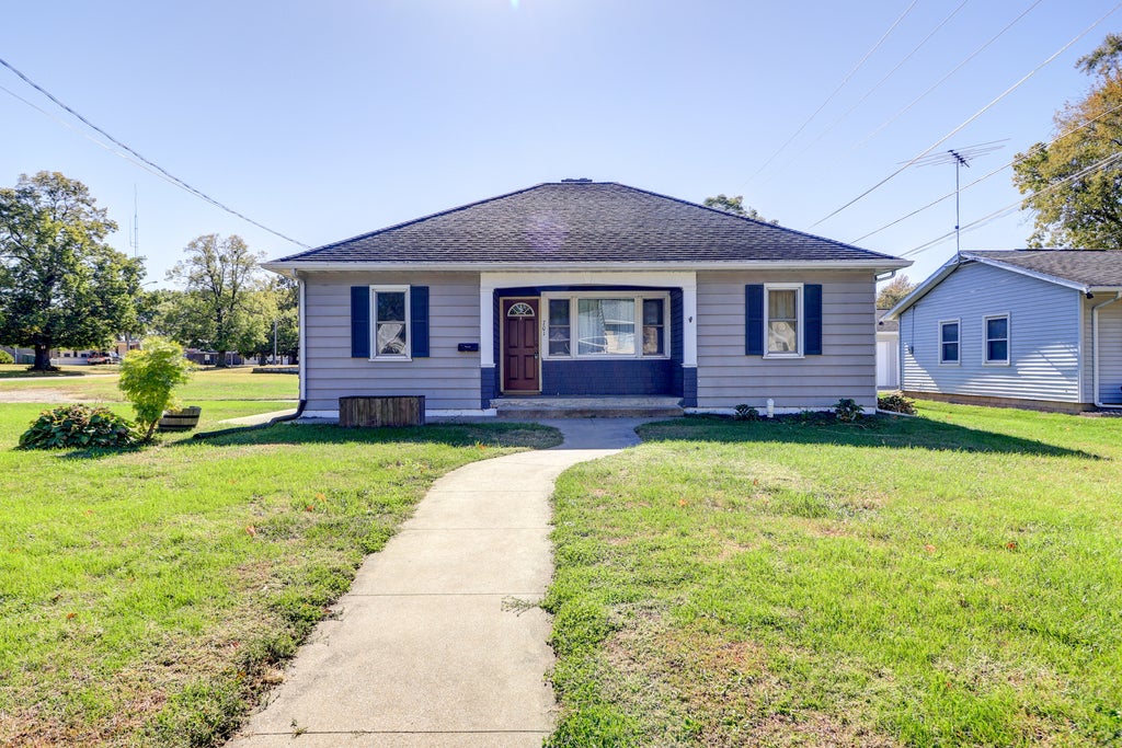 Move-in ready ranch situated on a desirable corner lot! This well-maintained home features hardwood floors in the living room and bedrooms, along with vinyl replacement windows throughout. The remodeled full bathroom (2019) adds a fresh, modern touch, while the pocket door leading to the dining area provides added charm and functionality. Stove, refrigerator, washer, and dryer, with the stove being just two years old, all stay. Water softener (2017), central air (2001), and a fully fenced backyard-perfect for outdoor enjoyment. This home offers comfort, convenience, and character all in one package.