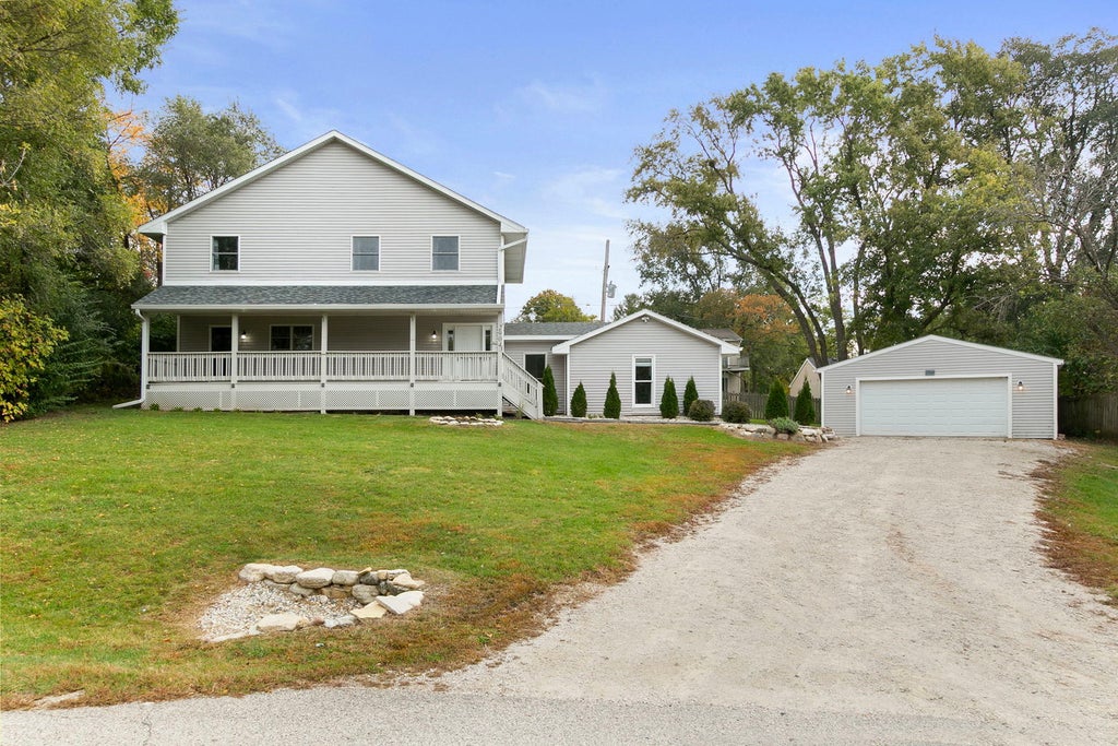 Welcome to this beautifully updated 3-bed, 2-bath home offering 2,674 sq ft of spacious living. From the moment you arrive, you'll fall in love with the front yard and expansive front porch. Inside, enjoy a large open-concept kitchen and eating area featuring an oversized island, brand-new appliances, a stylish new backsplash, and plenty of space for entertaining. The huge family room provides endless options for hosting or relaxing, and fresh new carpet adds a warm, inviting touch. Upstairs, you'll find three generously sized bedrooms including a primary suite with two closets-one of which is a spacious walk-in. The home sits on a generous lot with a mostly fenced-in yard, perfect for pets, play, or gardening. The oversized detached 2-car garage offers ample storage or workshop potential. Major updates include a newer roof, siding, gutters, and a new water heater. The lower level boasts a brand-new HVAC system, ensuring year-round comfort. Schedule your showing today, this one won't last long!