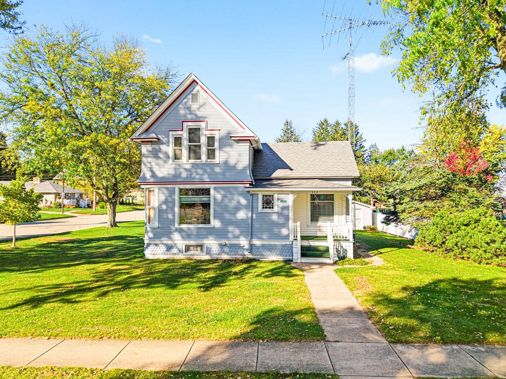 This welcoming 1894 Folk Victorian offers timeless charm, practical updates, and standout curb appeal. Set on a spacious corner lot surrounded by mature trees, the home features three bedrooms and one bath in a comfortable, functional layout. A outside elevator adds easy access to the home, while the heated two-car garage offers a bright, finished space ideal for storage, projects, or hobbies with a built-in foldable workbench. The property also includes an additional shed with electric and a dedicated workshop-perfect for any DIY enthusiast. Of note, new furnace and air conditioner (2022), wood windows with vinyl inserts, and the possibility of hardwood floors beneath the carpet. Whether you enjoy it as-is or add your own personal touch, this home combines small-town warmth with everyday convenience-just steps from the heart of Shabbona, and less than 5 minutes from Shabbona Lake State Park.