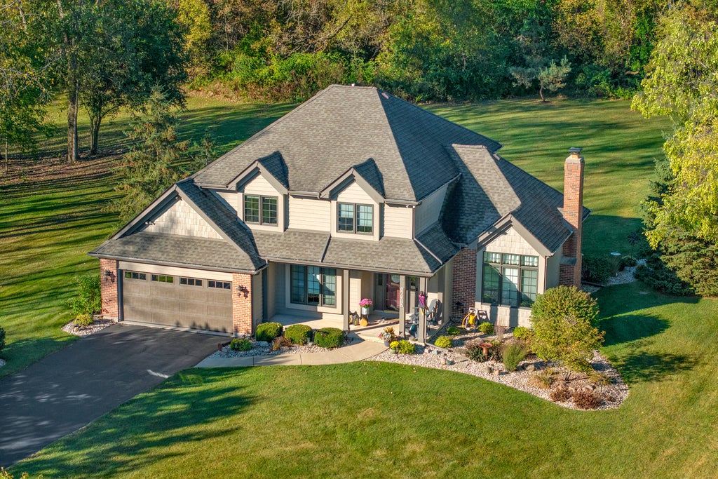 Well cared for Custom-built home with fantastic Curb Appeal nestled on a .75 acre, tree-lined property in one of Huntley's most desirable and best kept secret neighborhoods! Features Brick and Cedar Exterior Freshly Stained in 2021 ~ Inviting Covered Front Porch Ceiling with Stained Cedar Planks ~ Casement Windows with Newer Glass ~ Newer Roof (2013) ~ Hardwood Flooring ~ 6 Panel Doors & New Fixtures Throughout ~ Kitchen with Large Breakfast Bar, Corian Counters, Built-in Double Oven, Gas Cooktop, Crown Molding and Canned Lighting ~ Dining Area with Bay Window ~ Family Room with 10' Ceilings, White-washed Brick Wood-burning Fireplace with Gas Starter and Two Sun-filled Window Bays with Integrated Bench Seating ~ Formal Living Room could be converted to Main Floor Office ~ Master Bedroom with Trey Ceiling, Walk-in Closet and Updated Vaulted Bath with Skylight, Double Vanity with Granite Top, Whirlpool Tub and Separate Ceramic Shower with Glass Door ~ Three additional good size Bedrooms all with Ceiling Fans/Lights ~ Second Bath offers Double Vanity with Granite Top and Tub/Shower Combo ~ Main Floor Mudroom with Sink and Built-Ins ~ Finished Basement is Plumbed for Radiant Heat, offers Newer Luxury Vinyl Plank Flooring, Fresh Paint and New Baseboard Trim (2022) ~ Large Unfinished Storage Room with Washer/Dryer, Wash Tub and Mechanicals, plus a smaller finished Storage area ~ Water Softener (2024) ~ Oversized Concrete Patio with Gazebo ~ Outdoor Shed Electric Fence and Lush Landscaping enhanced with white stone accents and solar lighting creates a stunning, low-maintenance outdoor setting! Plus an oversized 2.5 Car Garage with Epoxy Flooring (2024), Newer Garage Door (2021) and Service Door to the Back Yard! All of this and so much more on a fantastic lot with incredible sunset views!